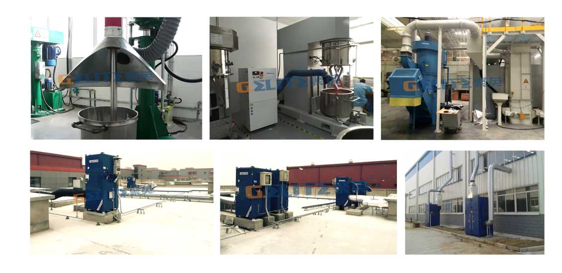 針對醫藥、化工、食品等行業的物料輸送、篩選、投料、混合攪拌等工藝,產生的粉塵具有小風量,高濃度等特性,同時需要滿足粉塵的回收利用。根據現場的工況可選配振打布袋除塵器、濾筒除塵器、脈沖布袋除塵器,也可以進行防爆配置需求。