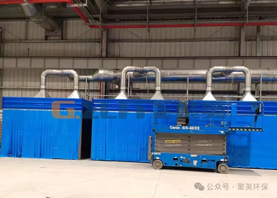 焊接點(diǎn) →半封閉房體 → 吸風(fēng)管路 →濾筒式焊煙凈化器 → 風(fēng)機(jī) → 煙囪(室外鋼平臺(tái)支撐)