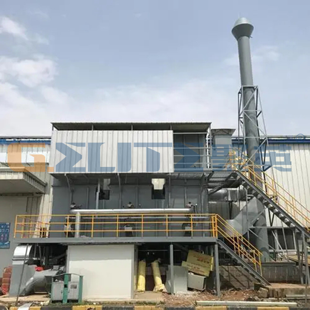 RTO蓄熱式焚燒裝置具體的反應方程式為:在活性炭吸附到飽和程度后,切換到脫附床,脫附需要外加的熱量,加熱裝置安裝在催化氧化床內部,開啟后同時預熱催化劑。催化氧化床達到設定的溫度后,將熱空氣引入脫附床內部,有機廢氣在加熱的作用下從活性炭表面全部解析出來。高濃度的有機廢氣在外力的作用下進入氧化床中,通過金屬鉑的催化作用,被燃燒分解為二氧化碳和水,廢氣通過這一操作得以凈化。這一燃燒過程的特征為低溫、快以及無焰,并產生大的熱量,人們可以將活性炭再次回用到有機廢氣的脫附與燃燒氧化中,從而降低能源消耗。