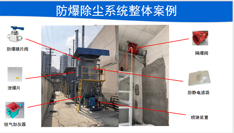對(duì)整個(gè)除塵器箱體進(jìn)行加固。鋼板的厚度多少、能承受多少的壓力等,在進(jìn)風(fēng)口加裝單向閥或隔爆閥,當(dāng)爆炸發(fā)生時(shí),不會(huì)影響到其他管道。在除塵器箱體上加裝泄爆口或泄爆片。泄爆片的作用是在爆炸發(fā)生時(shí),將爆炸的能量泄向一個(gè)可控的,且不受影響的地方。
